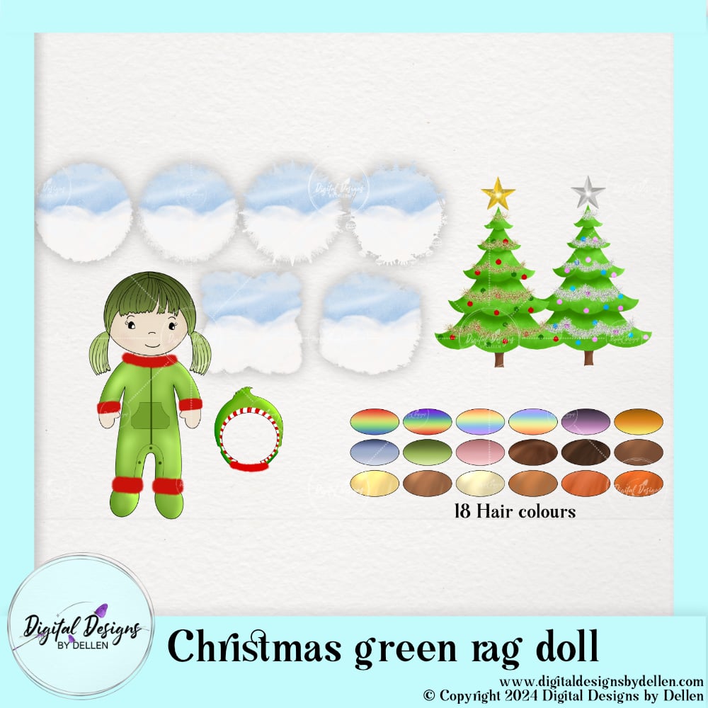 Christmas Green girl rag doll